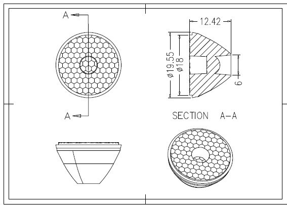 Soczewka; kolimator; do diody LED mocy; kąt skupienia: 25*; kąt świecenia: 25*; fi 19,8x10,8mm; SPL1; RoHS