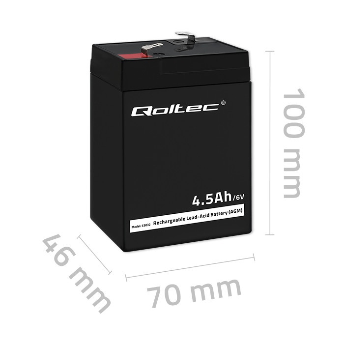 Akumulator AGM; 6V; 4,5Ah; kwasowy bezobsługowy; 100x70x46mm; LP4.5-6; 53032; QOLTEC