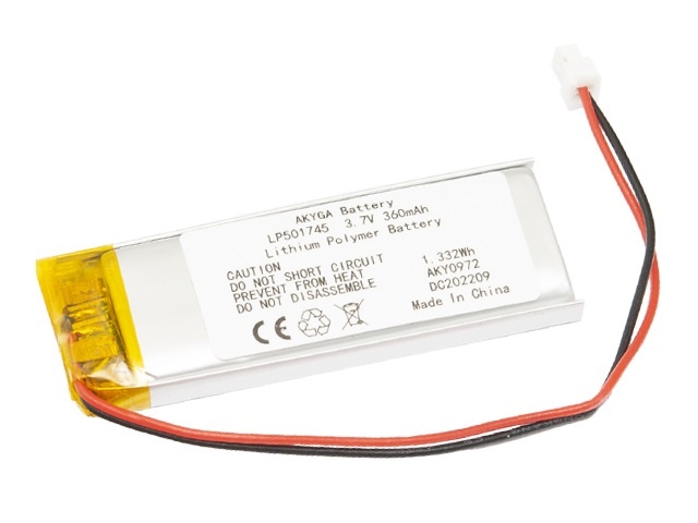 Oryginalny akumulator litowo-polimerowy (Li-Po) marki AKYGA o symbolu LP501745, zaprojektowany jako dedykowany zamiennik lub element serwisowy dla urządzeń typu Janosik. Ten wydajny akumulator o pojemności 360 mAh i standardowym napięciu 3,7 V zapewnia niezawodne i długotrwałe zasilanie Twojego urządzenia.