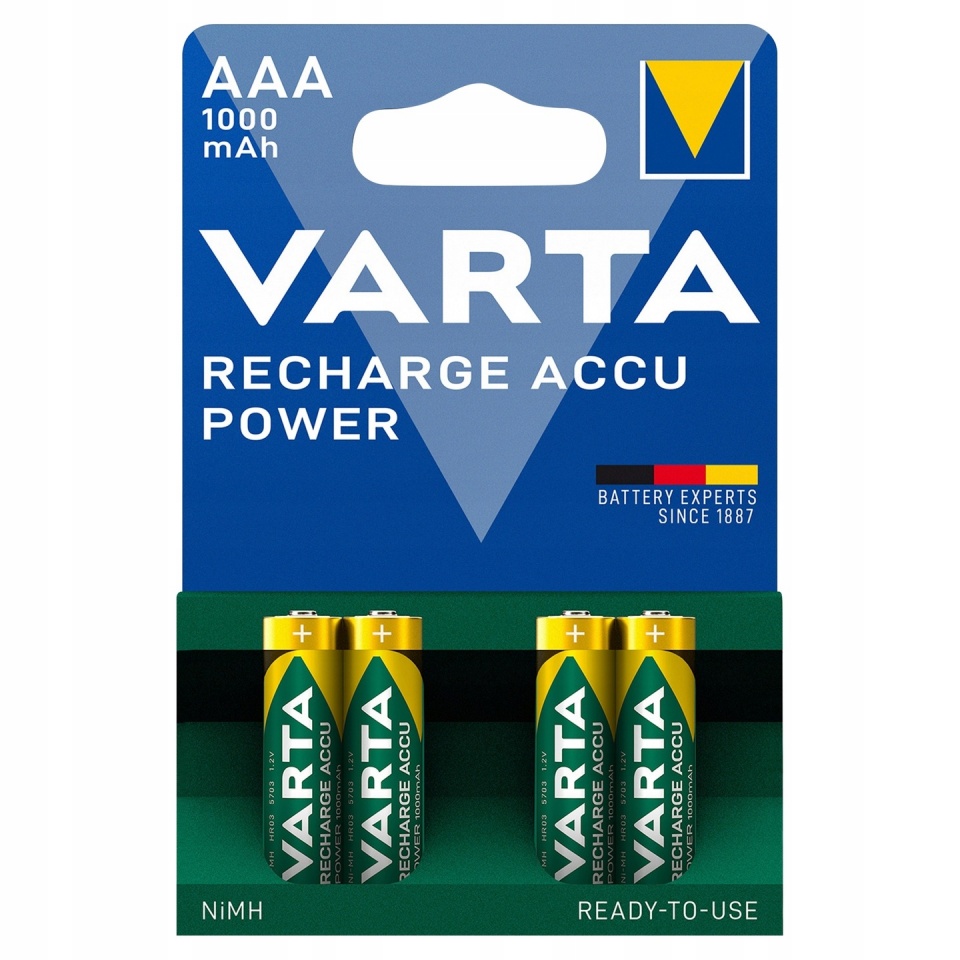 Akumulator; Ni-MH; 1,2V; 1000mAh; AAA R3; fi 10,5x44,5mm; Ready2Use; 750 623; VARTA