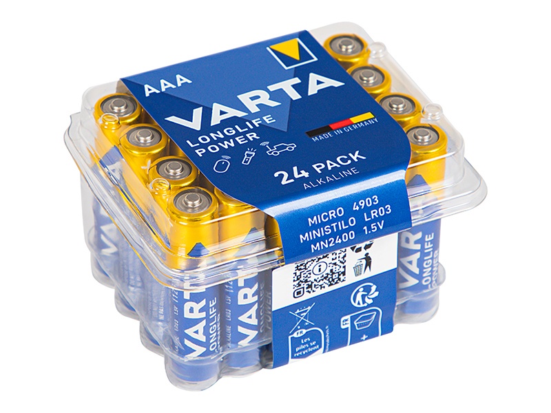 Wysokiej jakości wzmocnione baterie alkaliczne znanej i cenionej marki VARTA z serii LONGLIFE POWER cechujące się potężną energią do zasilania energochłonnych urządzeń takich jak zabawki na baterie, myszki bezprzewodowe, latarki oraz wiele innych.