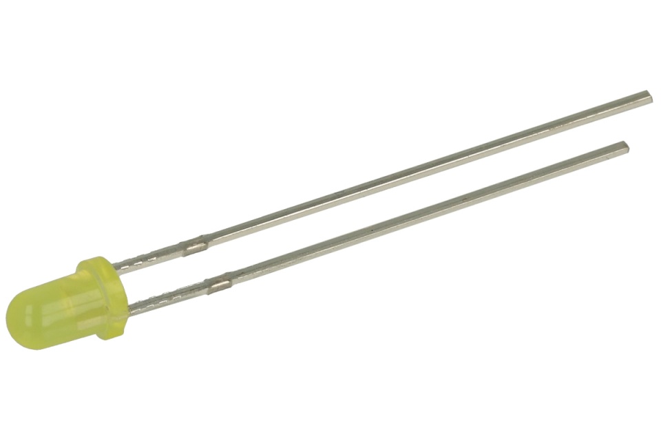 Dioda LED; 3mm; żółta; matowa / dyfuzyjna; 50-60mcd; 2V; 20mA; 45*; 585-595nm; żółty; 3AY4UD09; HBKT; RoHS; opakowanie/100szt