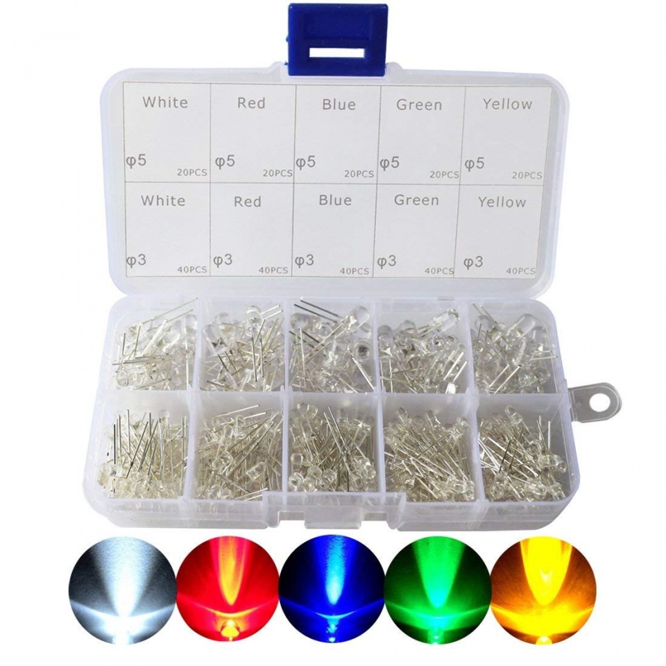 • Podwójny Standard Wielkości: Zestaw zawiera zarówno miniaturowe diody 3mm, jak i klasyczne, mocne 5mm. To daje Ci elastyczność – możesz użyć mniejszych diod do gęsto upakowanej elektroniki, a większych tam, gdzie liczy się widoczność.