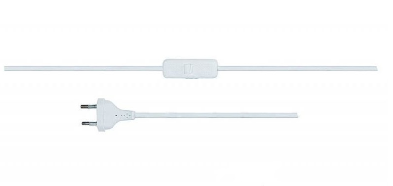 Przewód przyłączeniowy - wtyczka płaska - 2m - z włącznikiem - biały