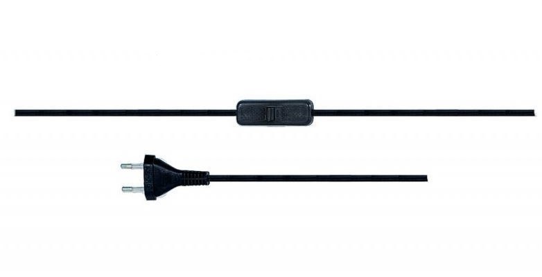 Przewód przyłączeniowy - wtyczka płaska - 2m - z włącznikiem - czarny