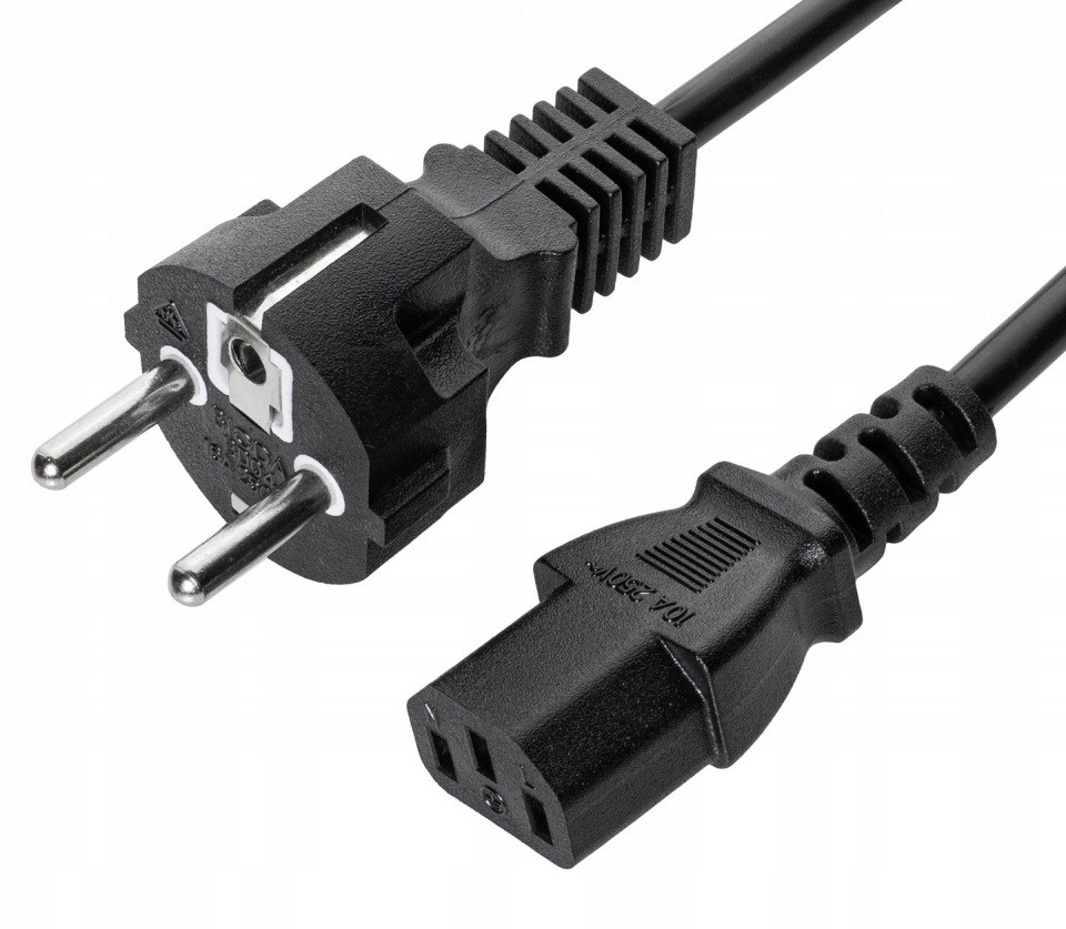 Kabel; zasilający; wtyk sieciowy CEE 7/7 prosty; gniazdo IEC C13 IBM prosty; 1,5m; czarny; 3 żyły; 0,75mm2; linka; Cu; PVC; 157g; BDKAB-EU-P3-1.5M; ESPE; RoHS; CE