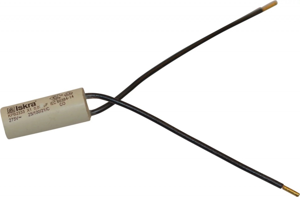 Kondensator; polipropylenowy; X1; 27nF; 275V AC; 20%; fi 9,6x32mm; 2 przewody; KPB2333; ISKRA; RoHS