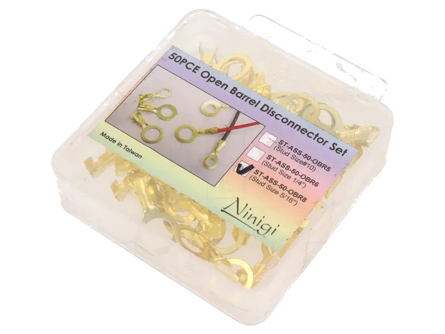 Zestaw; końcówka oczkowa; M8; 0,5-1,5mm2; zaciskanie; na przewód; mosiądz; proste nieizolowany; kpl.:50szt.; ST-ASS-50-OBR8; NINIGI