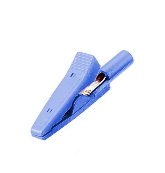 Krokodylek pomiarowy niebieski; 41,5mm; wtykany (gniazdo bananowe 2mm); 8A; 60V; MA-1e; RoHS