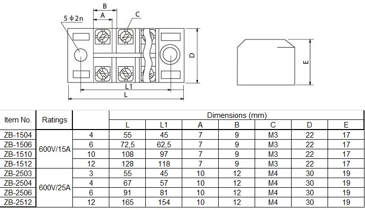 Złącze barierowe; ZB-2503; 3 tory; 25A; 600V; 55x30x19mm; RoHS