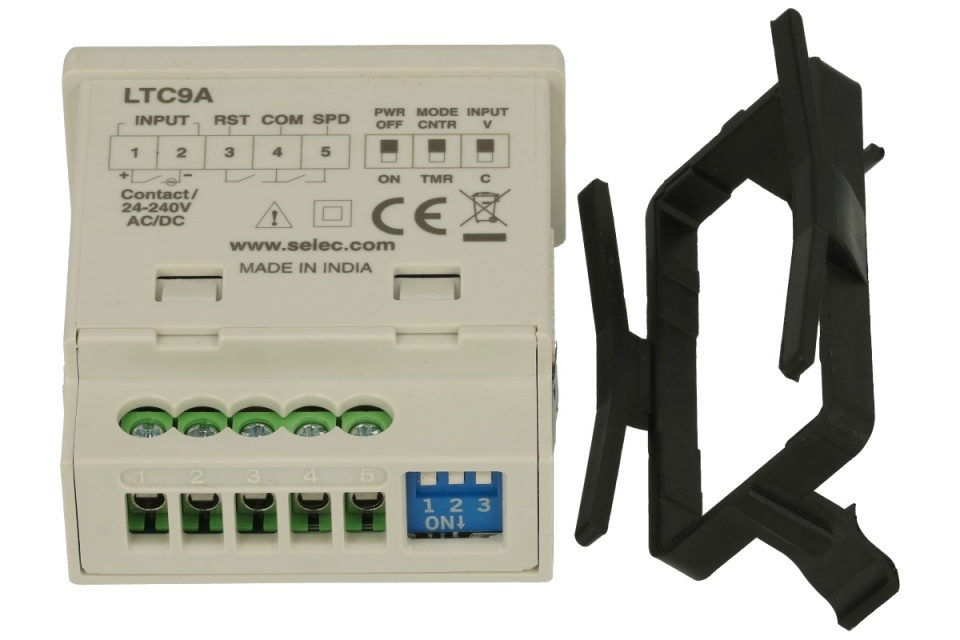Licznik czasu pracy/impulsów; LTC9A-CE; czas; impulsy; 1999:59:59 h/min/sec, 199999,99 h; AC/DC; 24x48x50mm; zaciski śrubowe; Selec