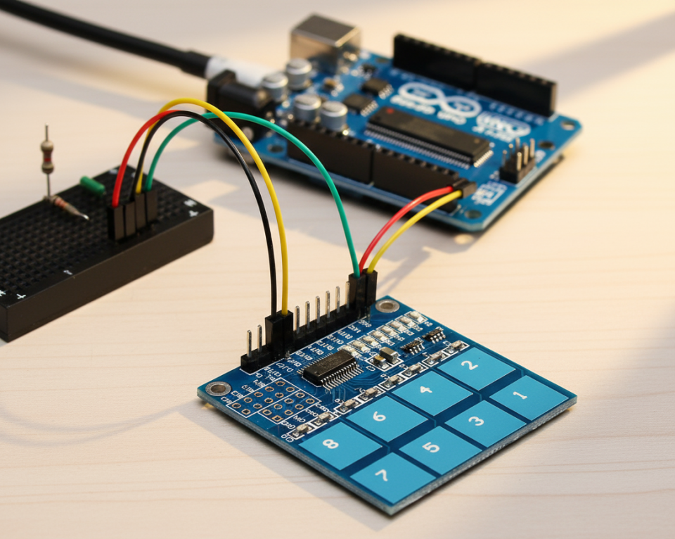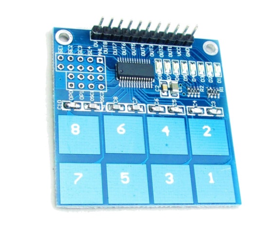 Moduł klawiatury dotykowej; 8 przycisków; 3-5V; dioda LED; 45x48mm; do ARDUINO, AVR, PIC, ARM; M-KD-A-8; JH; RoHS