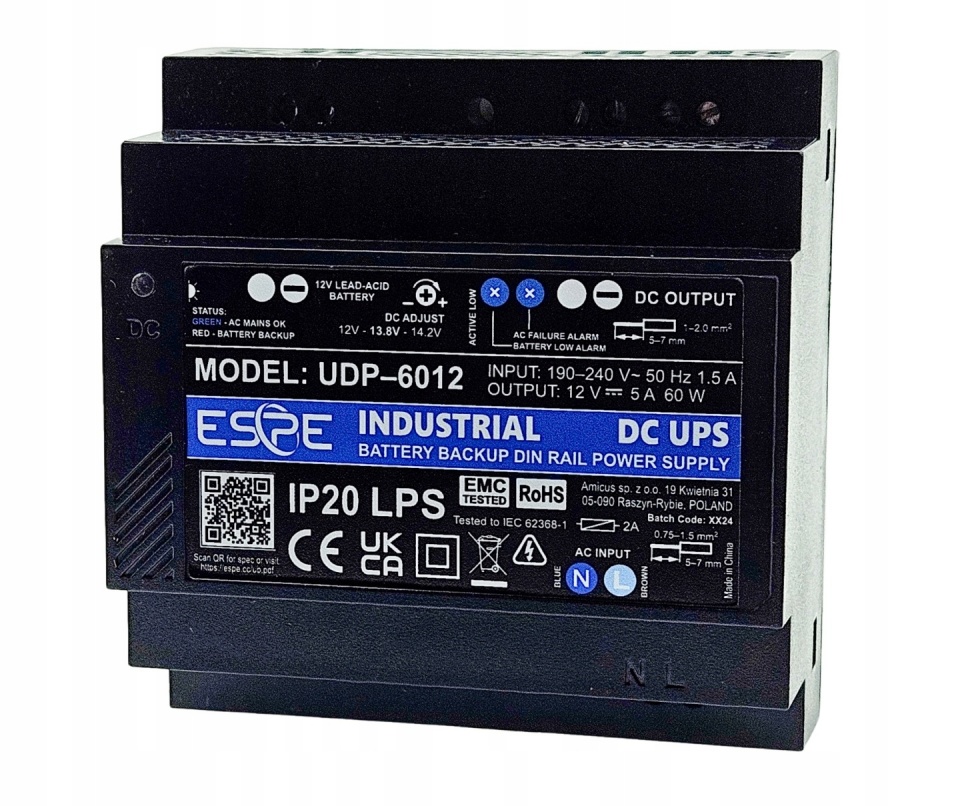 Zasilacz UDP-6012 to urządzenie typu „2 w 1”. Łączy w sobie precyzyjny stabilizator impulsowy oraz inteligentną ładowarkę akumulatorów. Dzięki temu system nie tylko otrzymuje stabilne napięcie podczas normalnej pracy, ale jest gotowy na natychmiastowe (bezprzerwowe) przełączenie w tryb bateryjny w momencie awarii sieci AC.