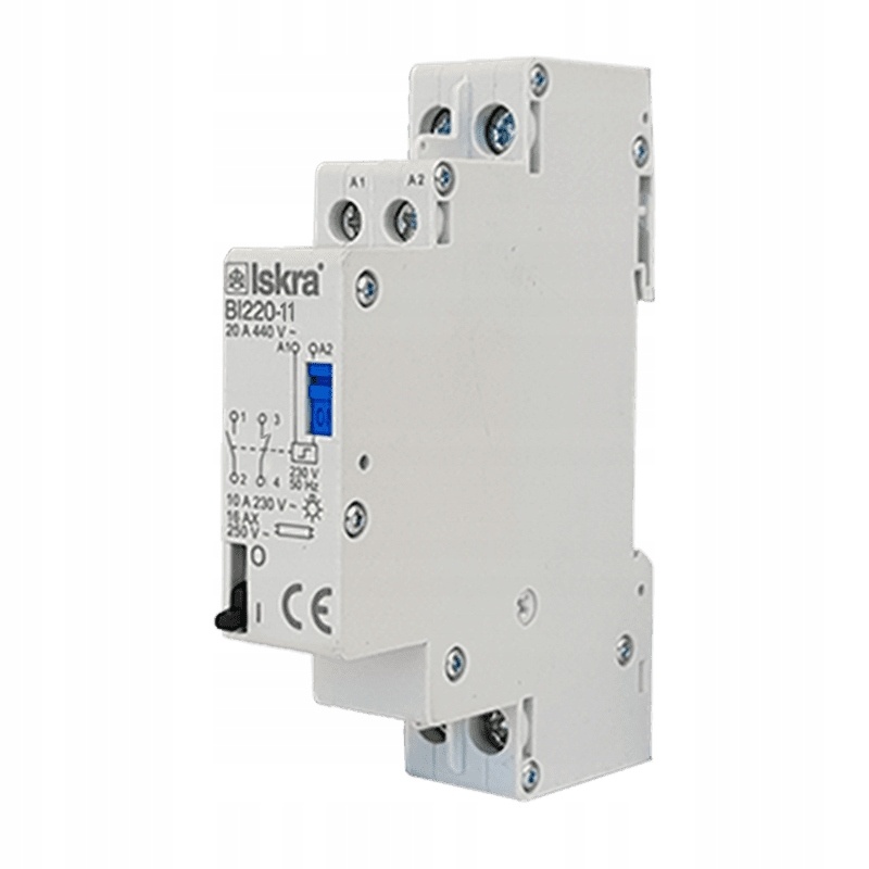 Przekaźnik instalacyjny; bistabilny, impulsowy; NC + NO; BI; 20A; na szynę DIN; BI220-11/24VDC; 30.070.174; ISKRA