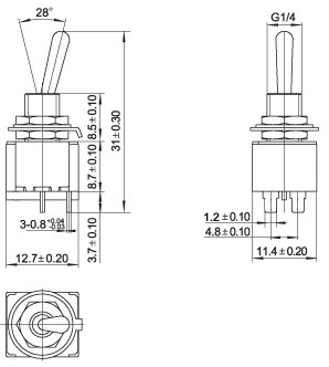 Przełącznik dźwigniowy; MTS202-A2; ON-ON; 2 tory; 2 pozycje; 6 pin; 3A; 250V AC; do druku; MTS-202-A2; RoHS