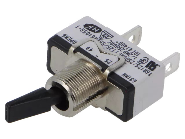 Przełącznik dźwigniowy; OFF-ON; 1 tor; 2 pin; do lutowania, konektory; 15A; 250V AC; SPST; fi 12,2mm; 631NH/2; APEM / IDEC; RoHS