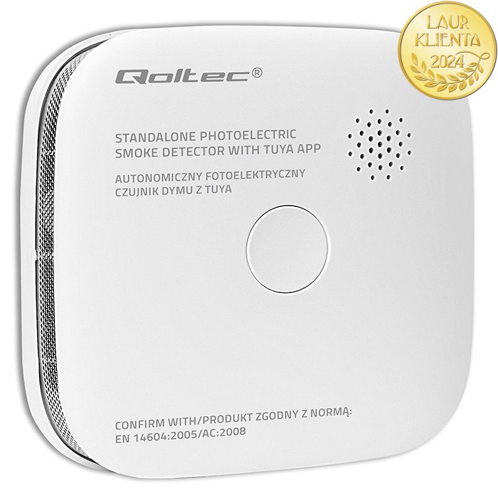 Czujnik dymu; 85dB; 3V; alarm; bezprzewodowy; detektor; WiFi; TUYA; certyfikat EN 14604:2005/AC:2008; 52579; QOLTEC; RoHS