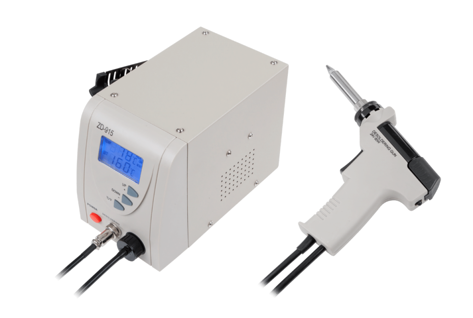 Model 915 to efektywne urządzenie rozlutownicze z kolbą o mocy 80 W. Potężna pompa o sile ssania 600 mmHg umożliwia szybkie i czyste usuwanie cyny z wielowarstwowych płytek PCB, minimalizując ryzyko uszkodzenia padów.