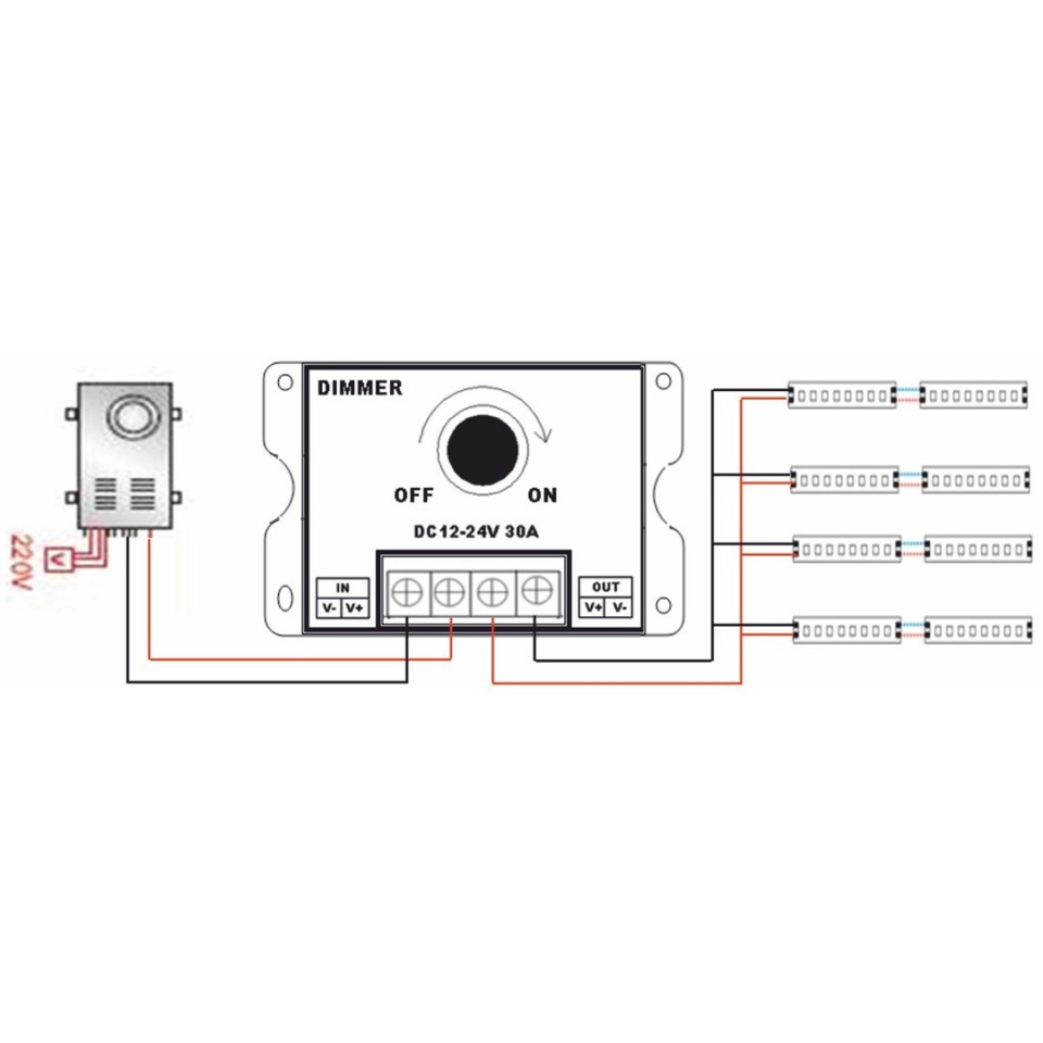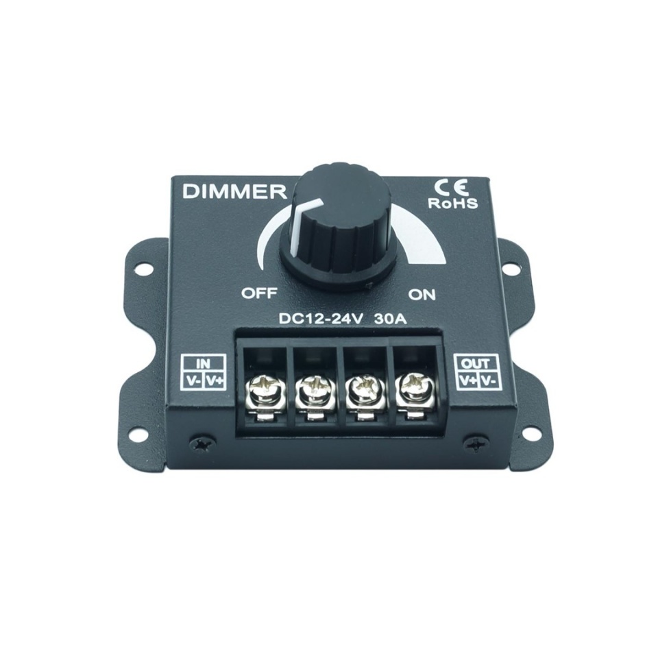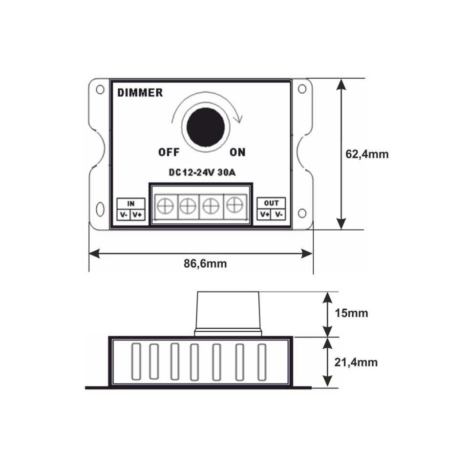 Ściemniacz manualny; do LED; jednokolorowa taśma LED; regulowany; 12-24V; 30A; 360/720W; 1 kanał; 86,6x62,4x26,4mm; ID-2098; PROVERO; RoHS; CE