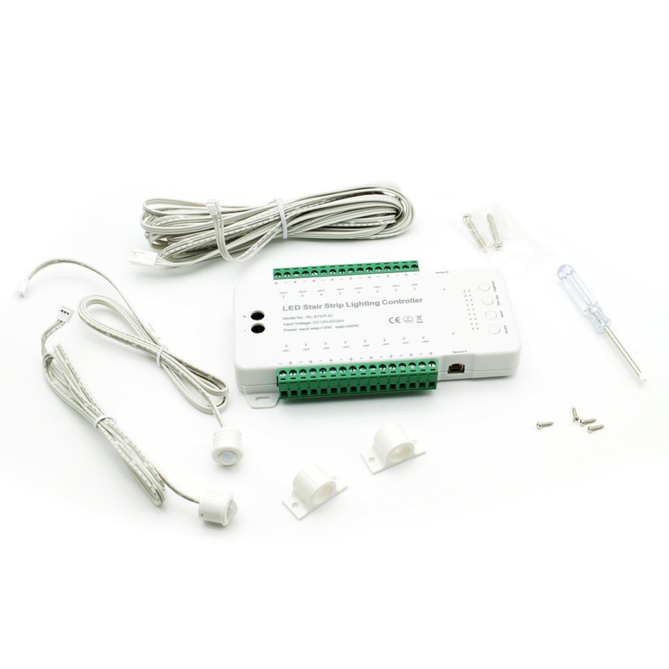 Sterownik schodowy; RL-STEP-01; do LED; z czujnikami ruchu; 12-24V DC; 240W; 16 kanałów; włącznik kaskadowy; biały; PROVERO; RoHS; CE