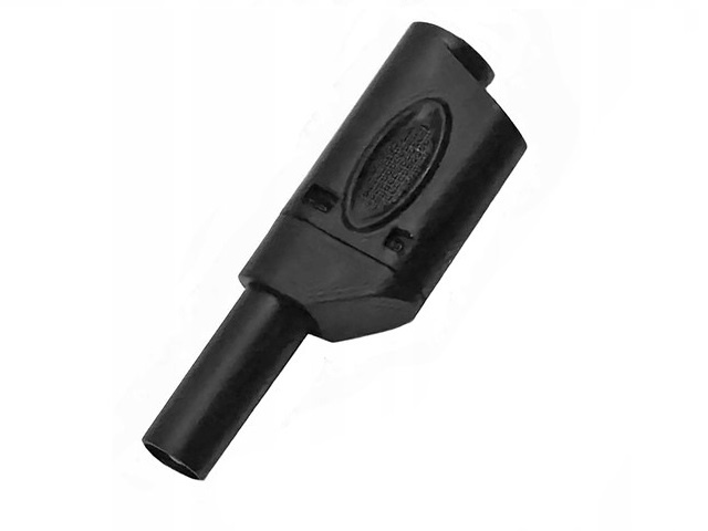 Wtyk bananowy; 4mm; czarny; bezpieczny; 54mm; wtykany (gniazdo bananowe 4mm); lutowany; 32A; 1000V; mosiądz niklowany; PA; 25.502.2; AMASS; RoHS