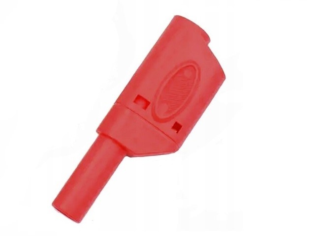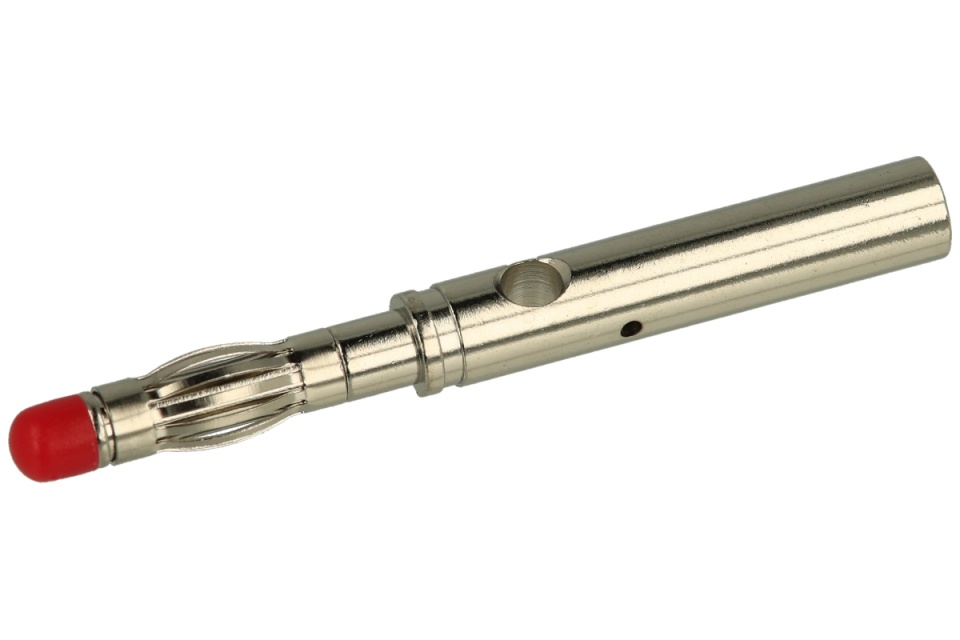 Wtyk bananowy; 4mm; czerwony; bezpieczny; 54mm; wtykany (gniazdo bananowe 4mm); lutowany; 32A; 1000V; mosiądz niklowany; PA; 25.502.1; AMASS; RoHS
