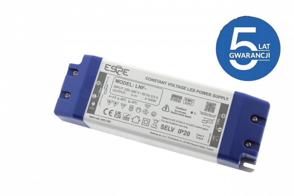 Właściwości: gwarancja: 5 lat; stałonapięciowy