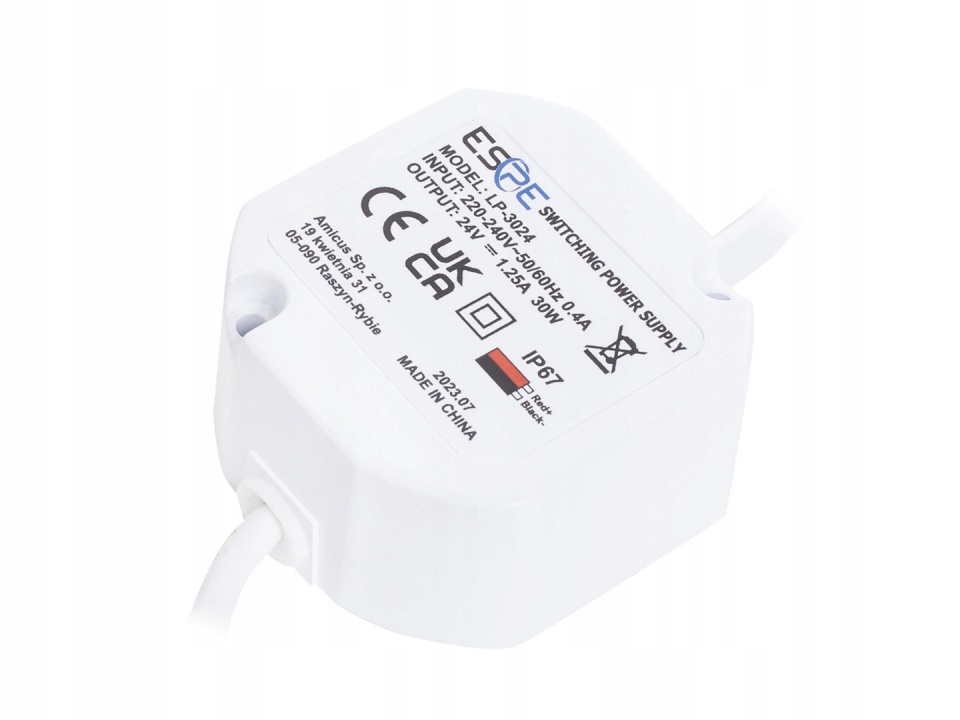 Zasilacz: impulsowy; LED; 30W; 24VDC; 1,25A; 220-240VAC; IP67; LP-3024; ESPE; RoHS; CE