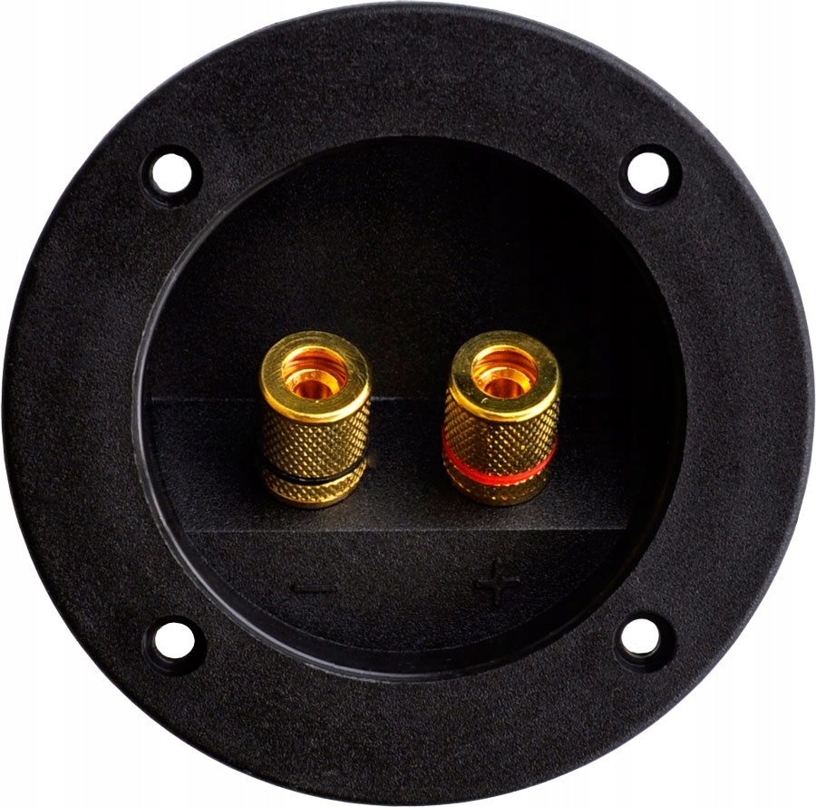 Gniazdo; terminal głośnikowy; 2x gniazdo 4mm (bananowe); okrągły; na panel; czarny; metal; fi zew.: 81,5mm; ZL-00109; ELEKTRONIKSC; RoHS
