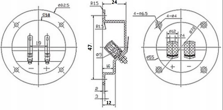 Otwór montażowy / raster: 58mm