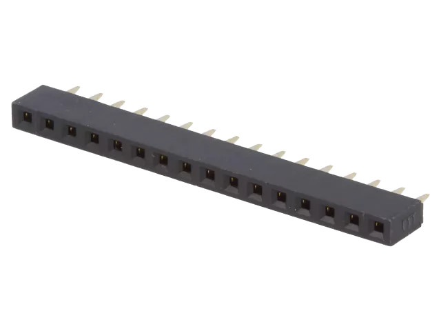 Piny (gniazdo); kołkowe; ZL305-16; 2,54mm; czarny; 1x16; proste; 5mm; 3mm; THT; złocone; NINIGI; RoHS; opakowanie/100szt