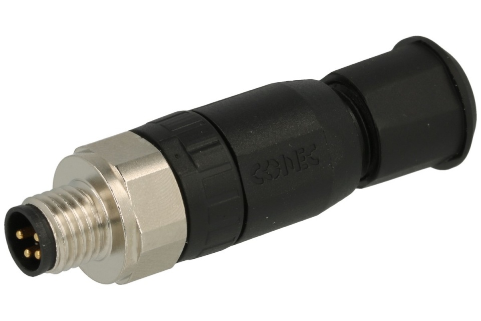 Wtyk; 42-00011; złącze męskie M8-4p; 4 tory; proste; śrubowy; 0,14-0,34mm2; 4-5,5mm; na przewód; czarny; IP67; 4A; 60V; CONEC; RoHS