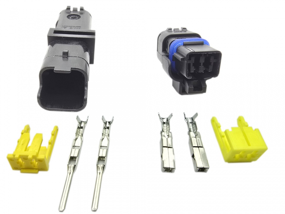 Kompletny Zestaw: Kupujesz wszystko, co niezbędne do montażu: złącze 2-pinowe, dedykowane piny/konektory oraz uszczelki zapewniające wodoodporność połączenia.