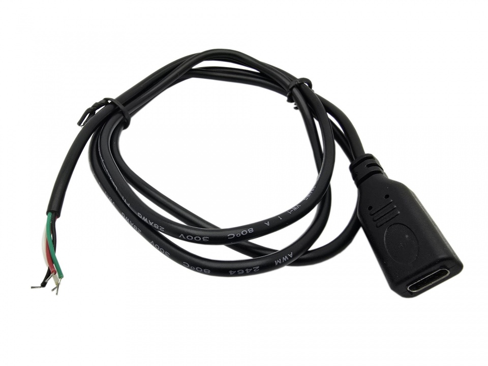 Gniazdo USB C; G/USB-C-4; czarny; w obudowie; do lutowania z przewodem (100cm); 4 tory; KLS; RoHS