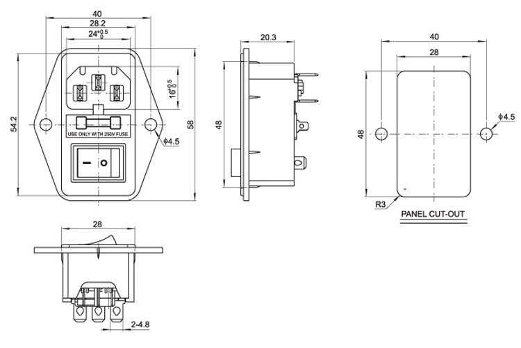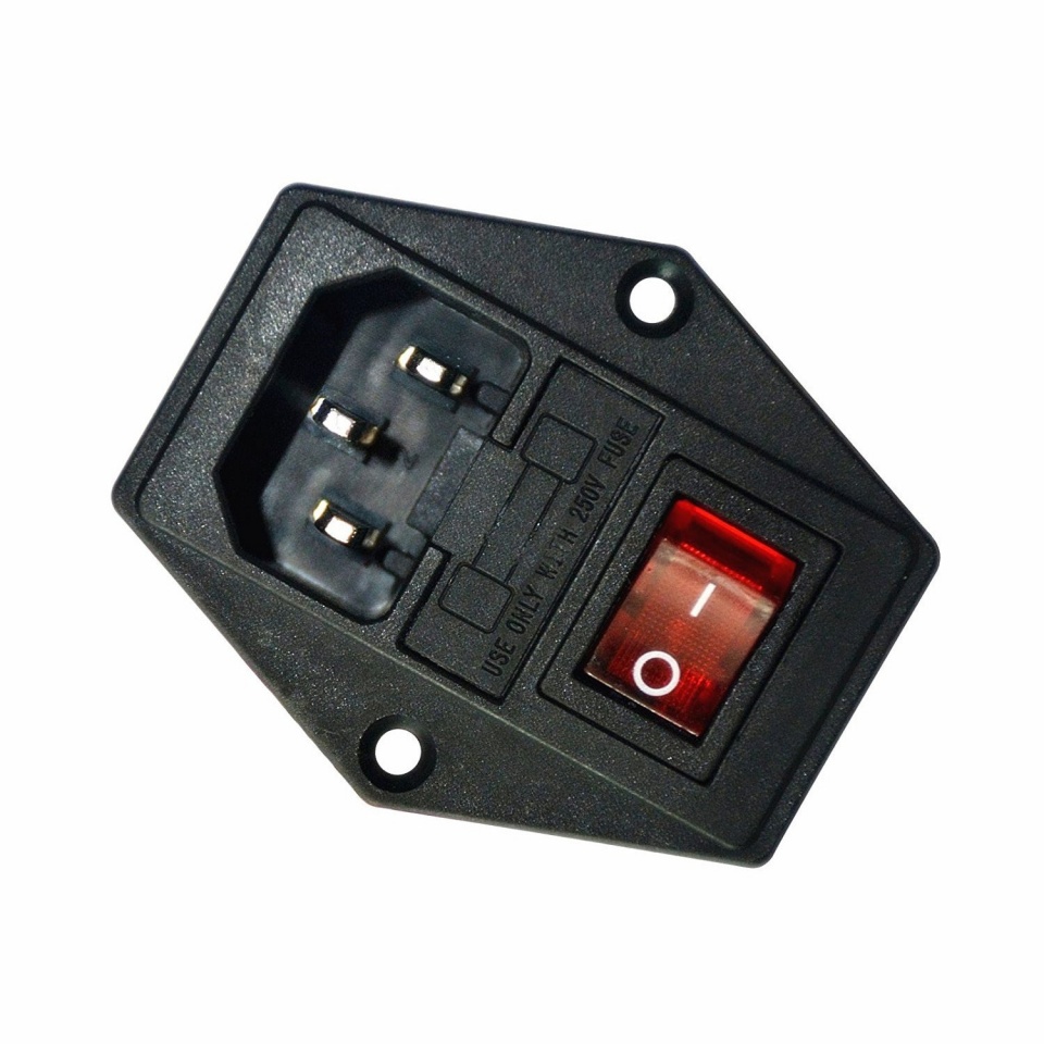 Wtyk; zasilające AC; IEC C14 IBM; proste; na panel; przykręcane; z wyłącznikiem; gniazdo bezpiecznika; konektor 4,8mm; 10A; 250V; C14WB; RoHS