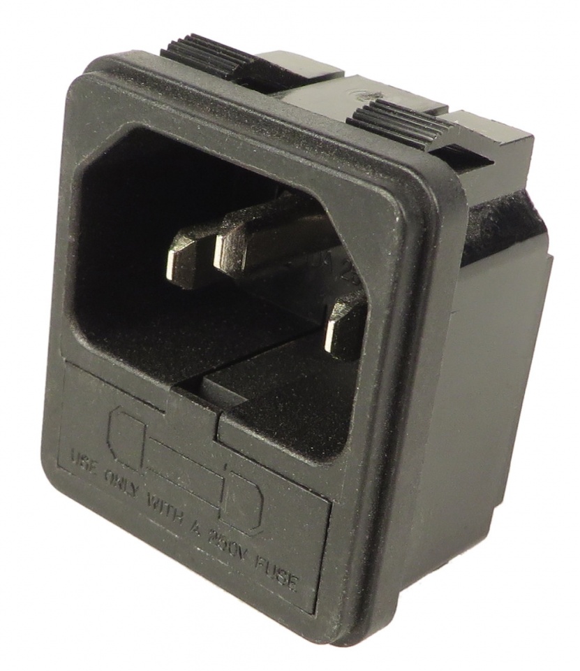 Wtyk; zasilające AC; IEC C14 IBM; proste; na panel; zatrzask; z gniazdem bezpiecznika; konektor 4,8x0,8mm; 10A; 250V; AC-09; ELEKTRONIKSC; RoHS